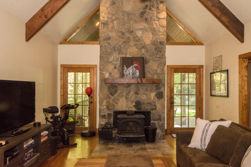 Beautiful, private and secluded home on 1 1/2 acres. Updated 4 bedroom 3 bath home in Bee Tree Community. Less than 15 minutes from Asheville and Black Mountain. Situated nicely on a private lot with plenty of parking. House can sleep 9 people comfortably with plenty of additional space. Enjoy the hot tub with light weight easy roll up cover, pool table and indoor and outdoor fireplaces. House Layout: Main floor: Kitchen, living room, dining room, master BR with king, couch and full bath, BR with queen and full bath, BR with bunk bed, BR with queen and full hall bath. Upstairs: Stairwell out of master BR goes to loft area with pool table and couch. Linens included for your convenience. Land line phone available as some cell phones receive only text reception.