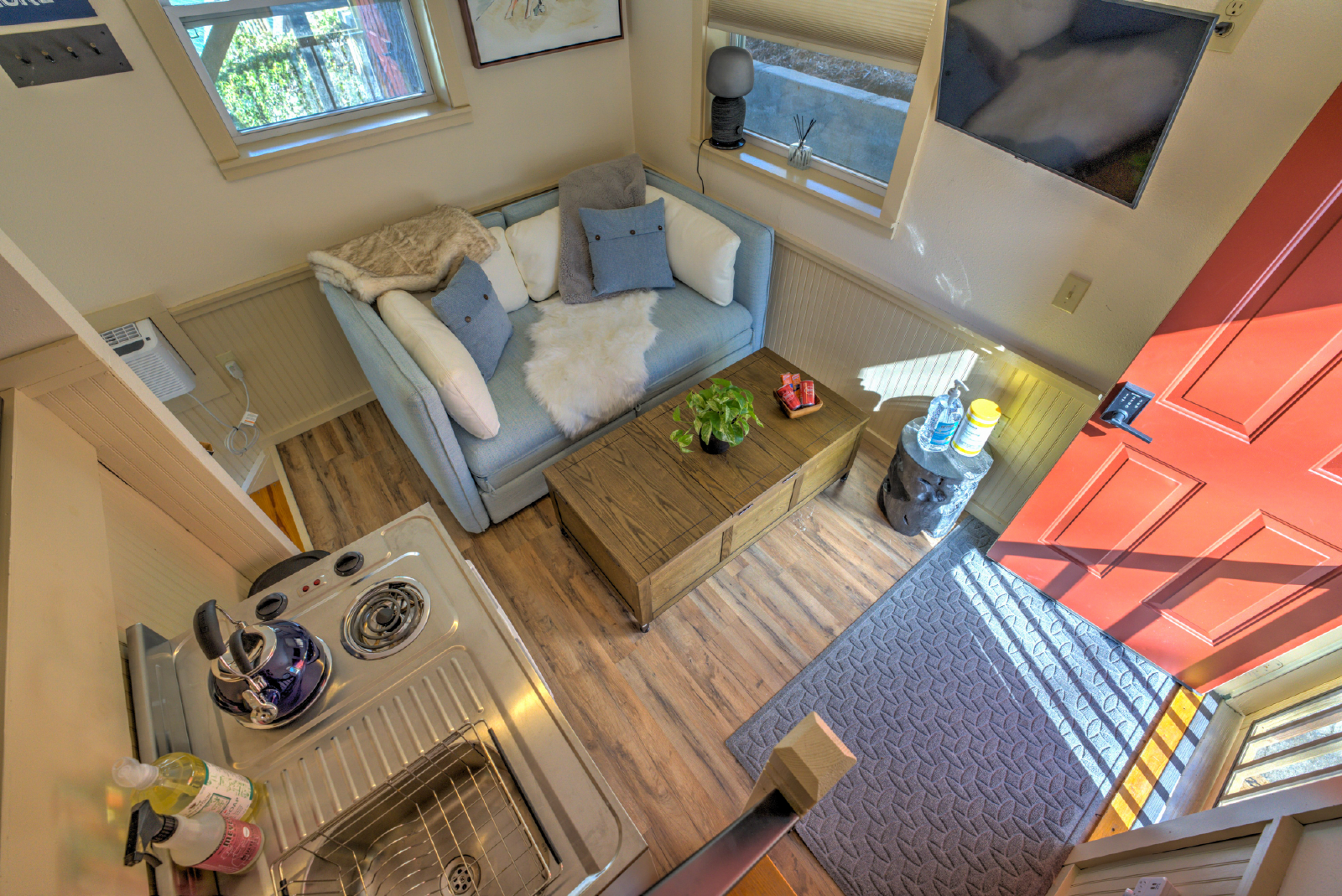 PMI Blue Ridge welcomes you to The Hummingbird House! This tiny house has everything you need for the perfect stay. Cook simple meals in the kitchenette, sit on the patio to enjoy a cup of coffee and take in the scenery, or cozy up on the couch after a long day of adventures! And bring the dogs (additional fee required)! They will love the lake too.