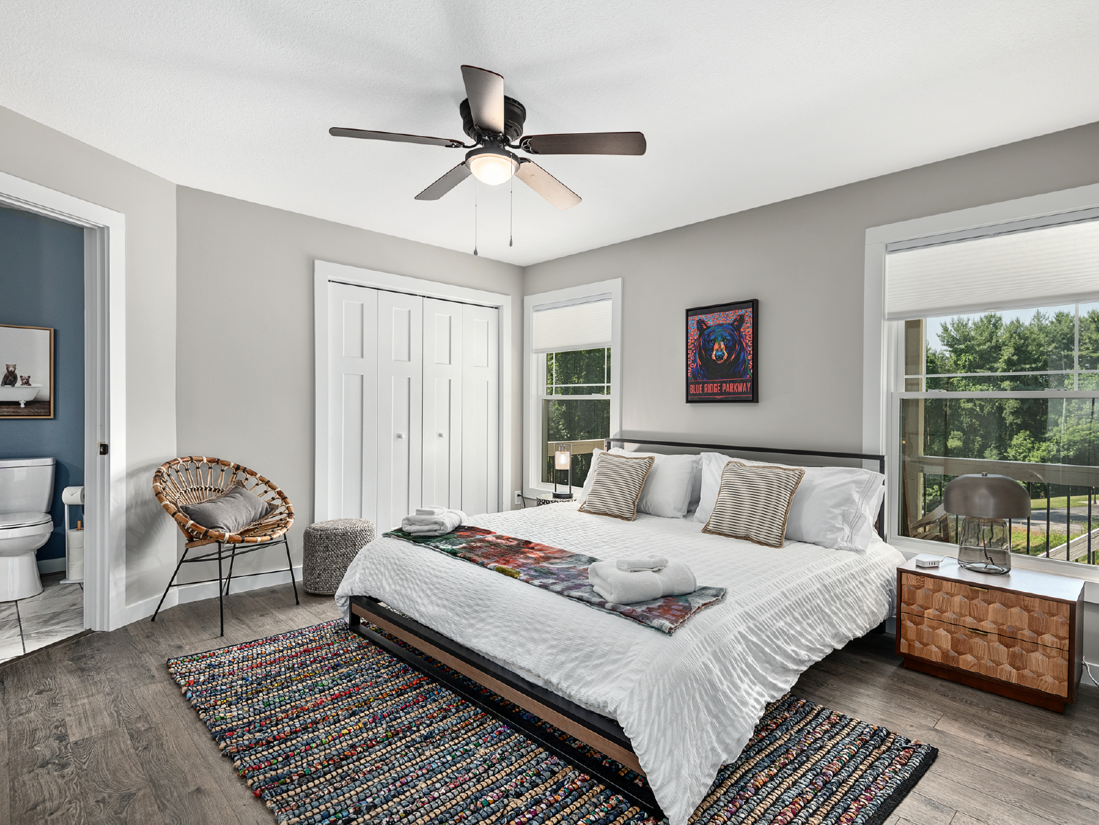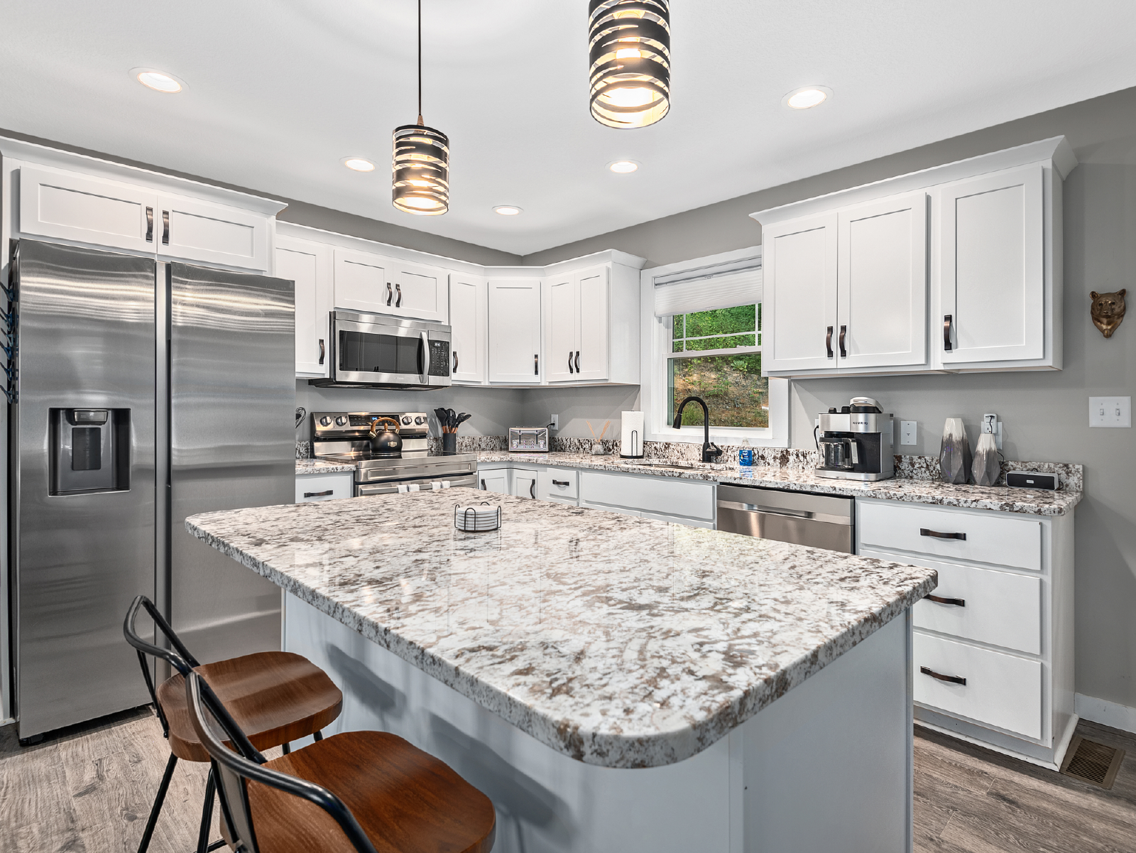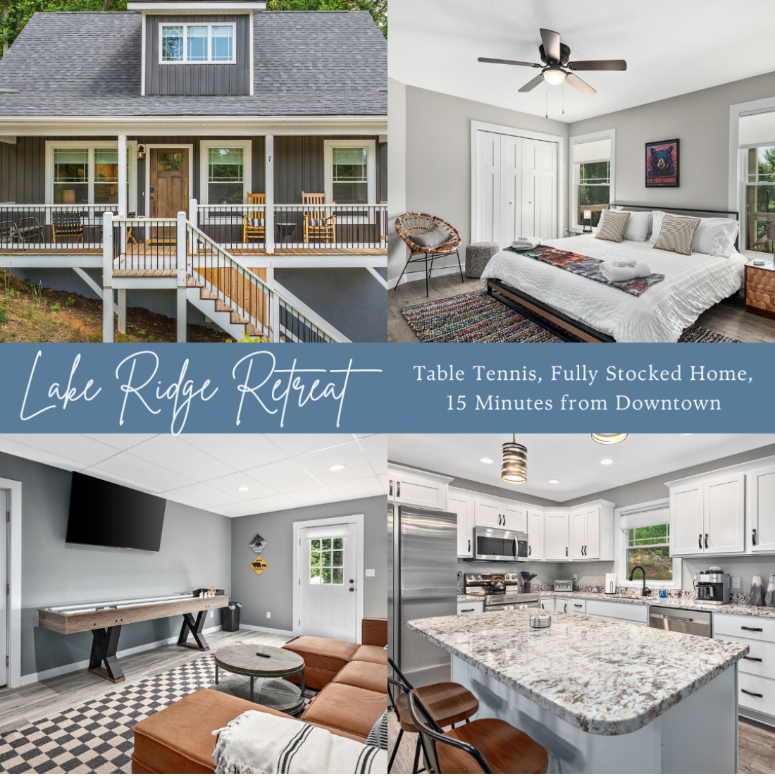 PMI Blue Ridge invites you to The Lake Ridge Retreat!This fully stocked, 3-bedroom, 3-bathroom, private home is your launching pad for everything the area has to offer. This newly renovated getaway is just 15 minutes from downtown. Over the ridge in the other direction is Mount Pisgah, and the Bent Creek Mountain bike area. There is plenty of space to spread out, with two separate living rooms, both with large comfy couches and TVs and plenty of games (including a shuffleboard table!).