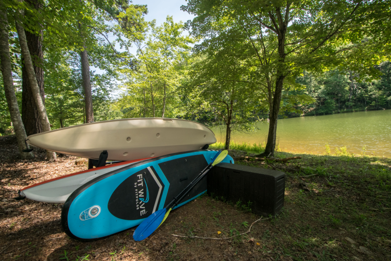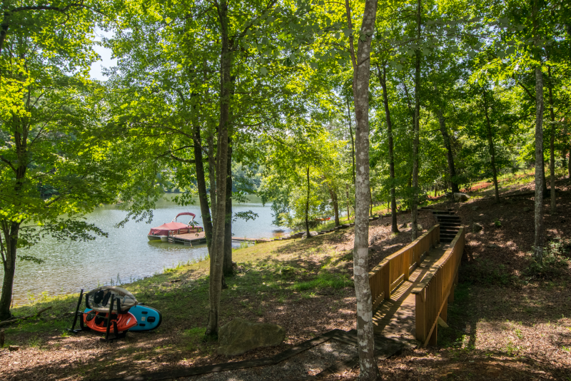 Come enjoy this private, 2 acre, lakefront property on Lake Adger. With 3 bedrooms, 3.5 baths the house comfortably sleeps 10. On your walk down to the lake, before you cross the bridge, you'll find Kayaks and Paddleboards to use in the cove. There is also a private dock on the property to swim from. Lake Adger is approximately 438 surface acres with approximately 14.5 miles of private shoreline and spectacular mountain views. There is an 80-horsepower limit on pontoon boats and a 60-horsepower restriction on any other watercraft; to maintain its tranquil environment, no jet skis or water-skiing is permitted.